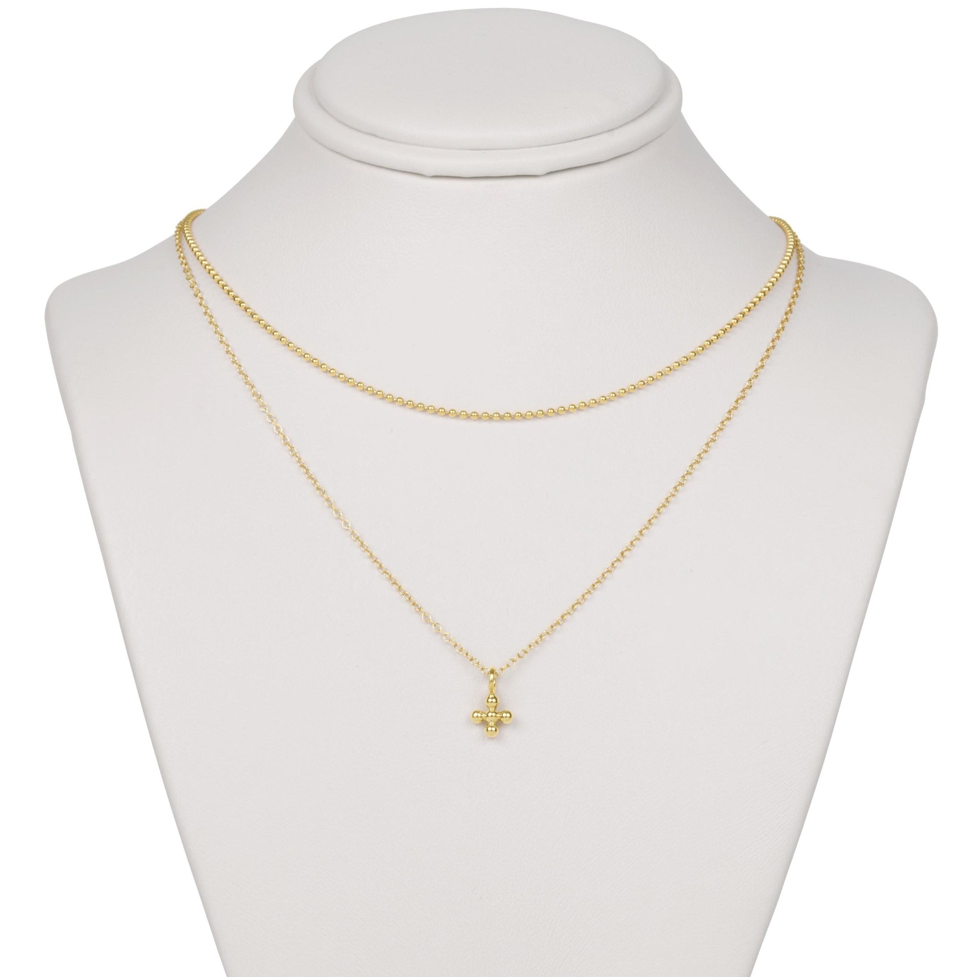 - Layers include: (1) 15" Choker Classic Beaded Chain - Gold, (1) 16" Necklace Gold - Classic Beaded Signature Cross Small Gold Charm
