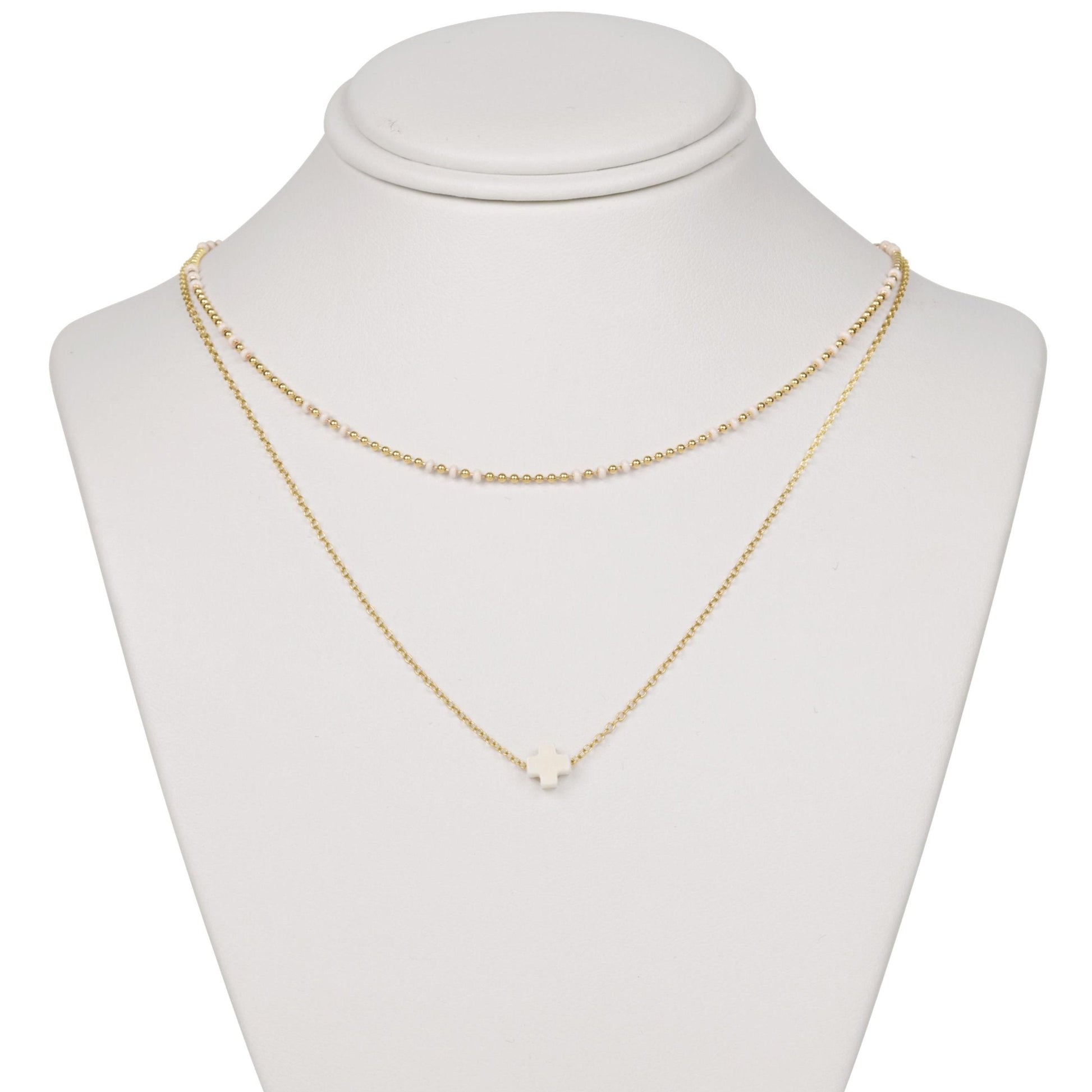 - Layers include: (1) 15" Choker Hope Joy - Off-White, (1) 16" Necklace Gold - Signature Cross Small Off-White