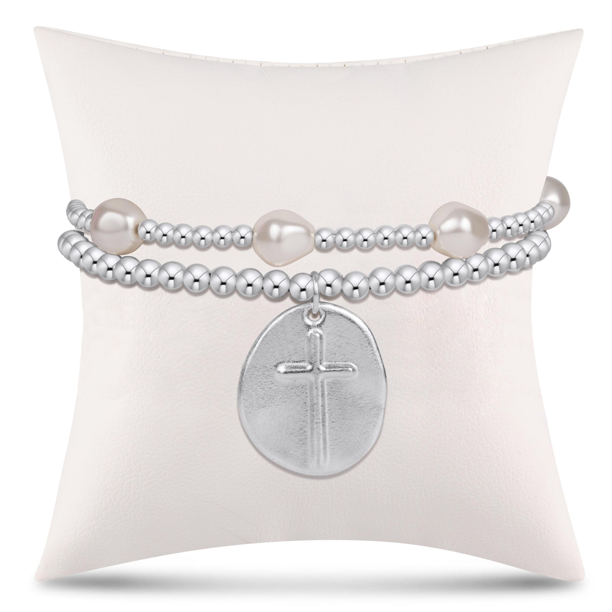 - Bracelet stack of 2 includes: (1) Classic Sterling 4mm Bead Bracelet - Inspire Sterling Charm, (1) Admire Sterling 3mm Bead Bracelet - Pearl